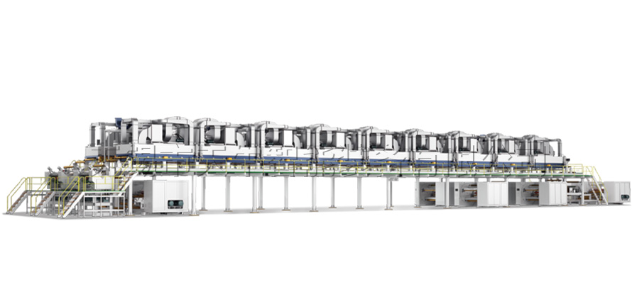 標配:直徑1200雙工位圓盤翻轉式氣脹軸收放卷,不減速自動換卷;蚌殼式烘箱(加熱方式:蒸汽、導熱油或電加熱可選);